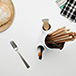 大小様々なカトラリーを立てておけるスタンド。カトラリーの長さに合う切り口を選んで収納できます。